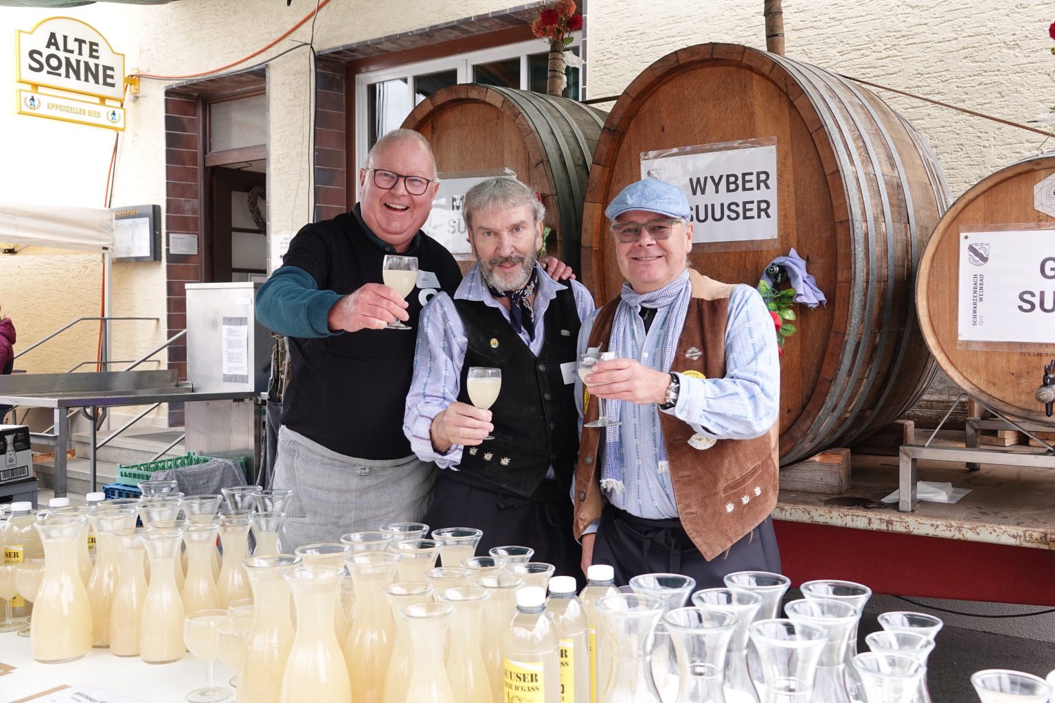 Im Zentrum der Herbstfestivitäten stand natürlich auch in diesem Jahr der weisse Suuser von Schwarzenbach Weinbau. Ganze 1390 Liter (in Obermeilen wird der Suuser allerdings in Kilo bestellt) des feinen gegärten Traubensafts wurde in den Gärstufen Manne-, Wyber-, und Goofe-Suuser ausgeschenkt.
