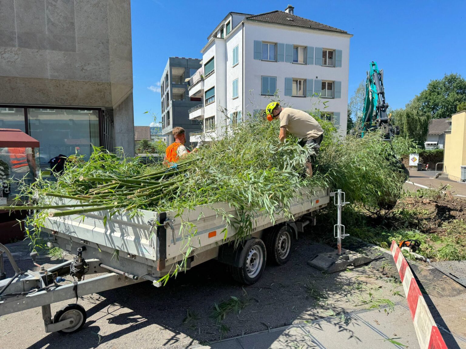 Die Firma erhielt den Auftrag, auf einem Grundstück an der Dorfstrasse mitten in Meilen auf einer Fläche von rund 100 Quadratmetern den bestehenden Bambus zu roden und abzutransportieren. Dank der kreativen Zusammenarbeit aller Beteiligen inklusive Knies Kinderzoo in Rapperswil wurde schliesslich aus einer einfachen Gartenarbeit ein aussergewöhnliches Projekt.