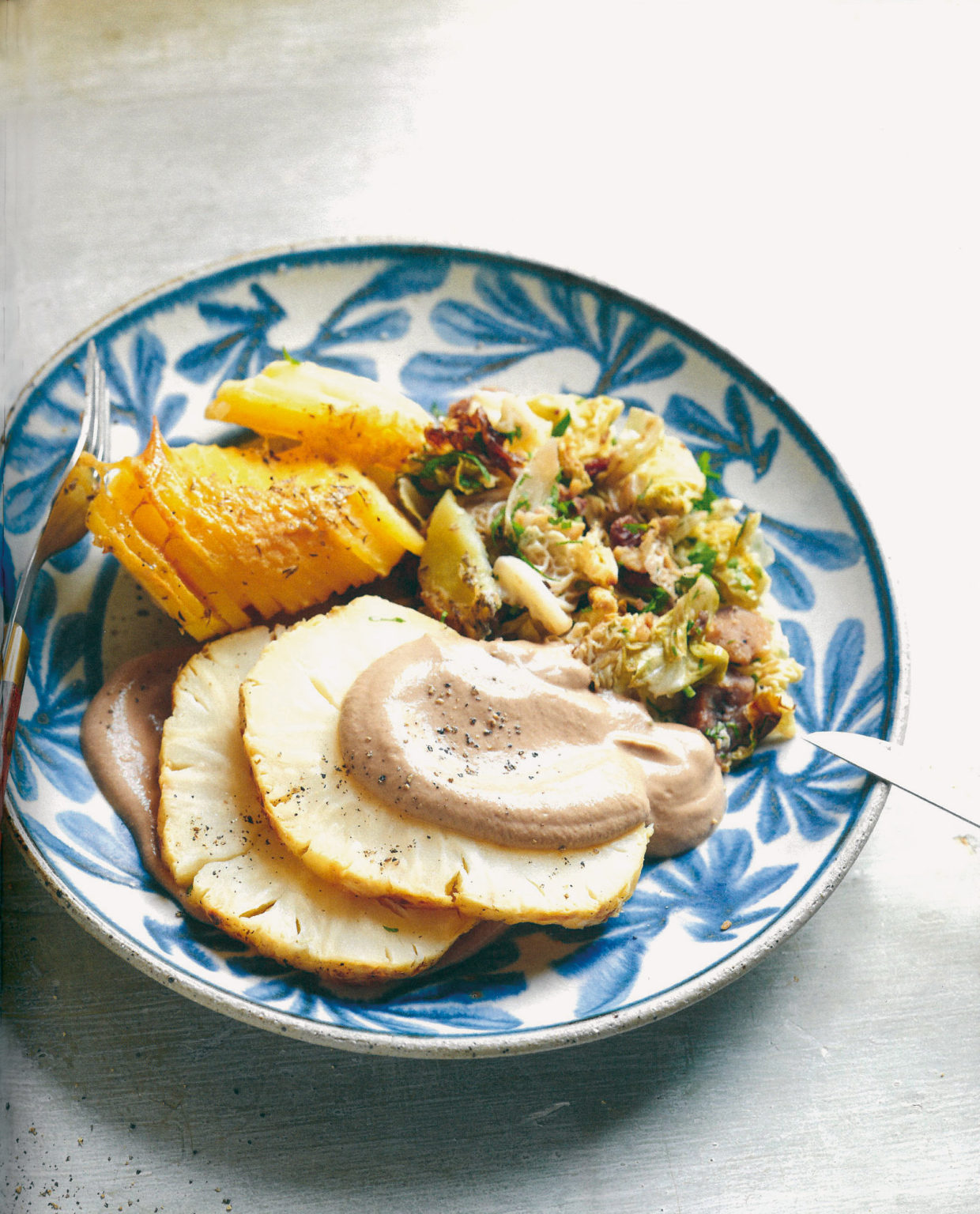 Selleriebraten mit Marroni-Wirz, Pilzsauce und Kartoffelgratin