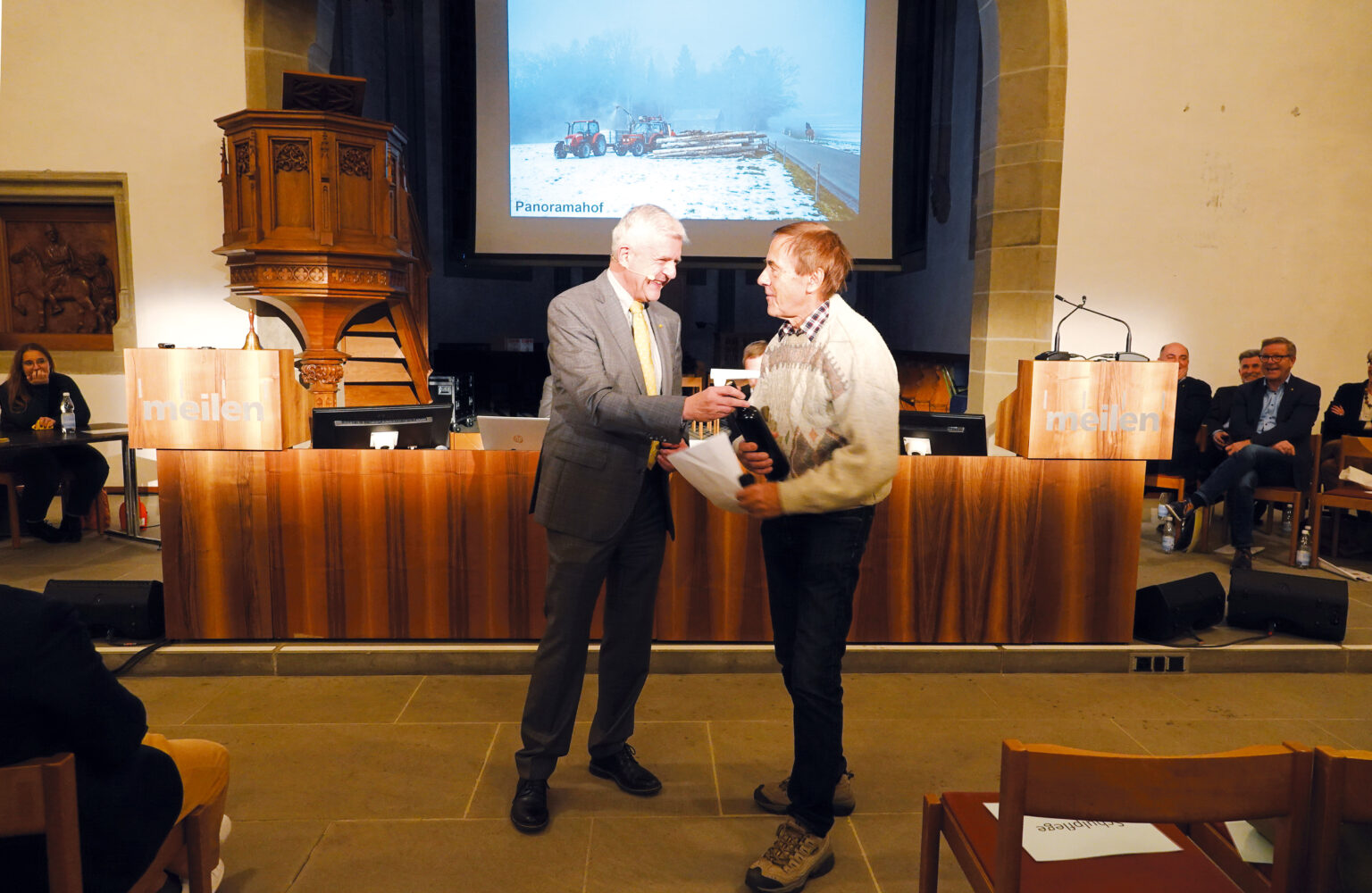Zum Schluss durfte Gemeindepräsident Christoph Hiller noch das übliche Geschenk verteilen: Den Meilen-Kalender gibt es jeweils nur für die Besucher der Dezember-Budgetgemeindeversammlung. Dieses Jahr mit Fotos der jungen Meilemerin Sabrina Pfiffner. Das vorgegebene Thema: Landwirtschaft, und zwar «beim Schaffen».