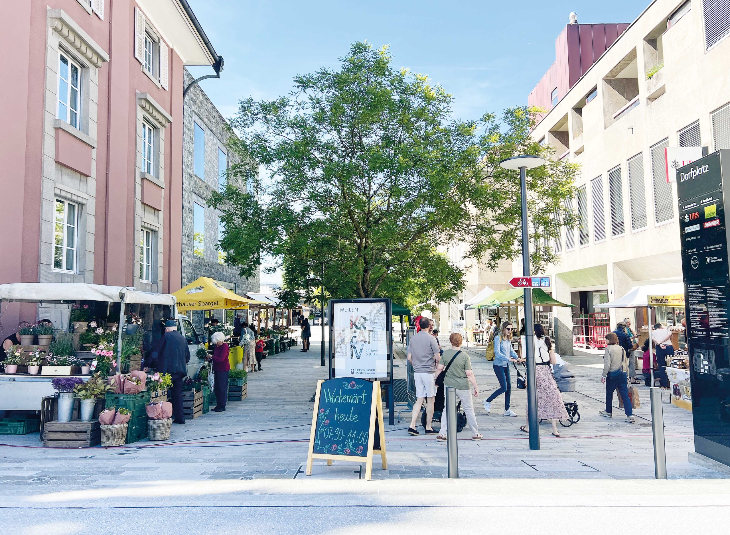Wuchemärt gegenüber des Bahnhofs Meilen auf dem Dorfplatz, ab 27. März immer freitags von 7.30 bis 11.00 Uhr.