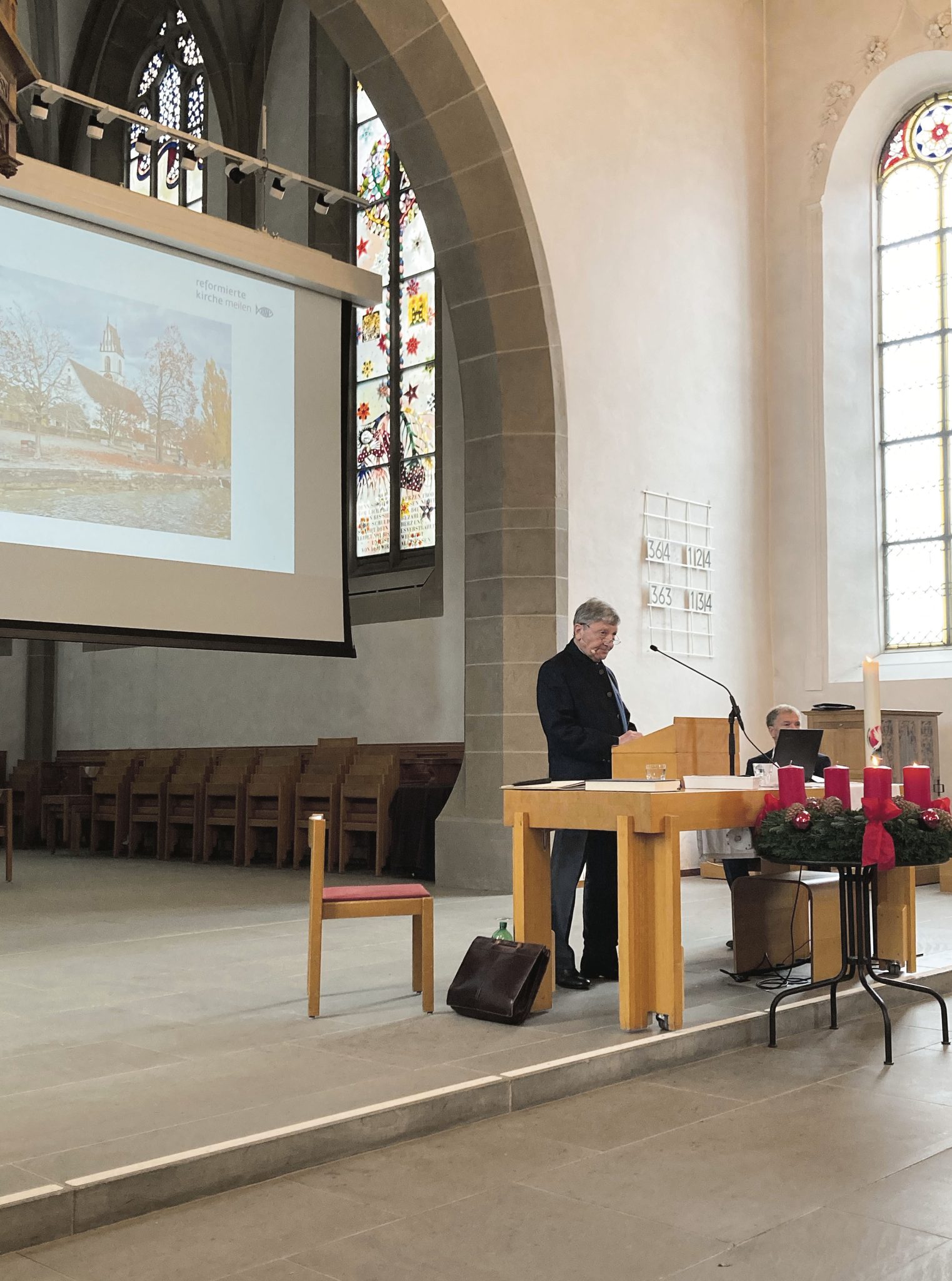 Nach erläuternden Worten zur weiteren Abwicklung des Liegenschaftenkaufs in Erlenbach lud Kirchenpflegepräsident Andrea Picenoni die Anwesenden zum adventlichen Apéro ins Kirchenfoyer ein.