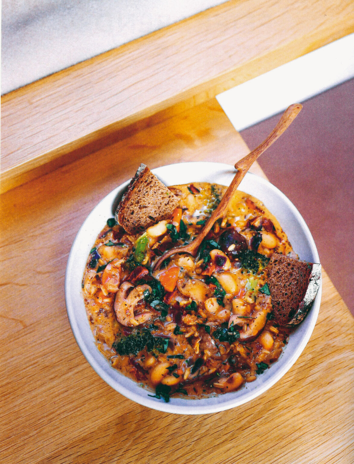 Alle der über 80 Rezepte bereiten übrigens auch Freude, wenn man sie zu Hause zubereitet. Unser Rezept der Woche ist sogar richtiges «Seelenfutter» für kühlere Tage mit vielen Vitaminen, Eiweiss (von den weissen Bohnen) und langkettigen Kohlenhydraten dank des Haferkorns. Und die Pilze verleihen dem Gericht eine erdig-würzige, herbstliche Note.