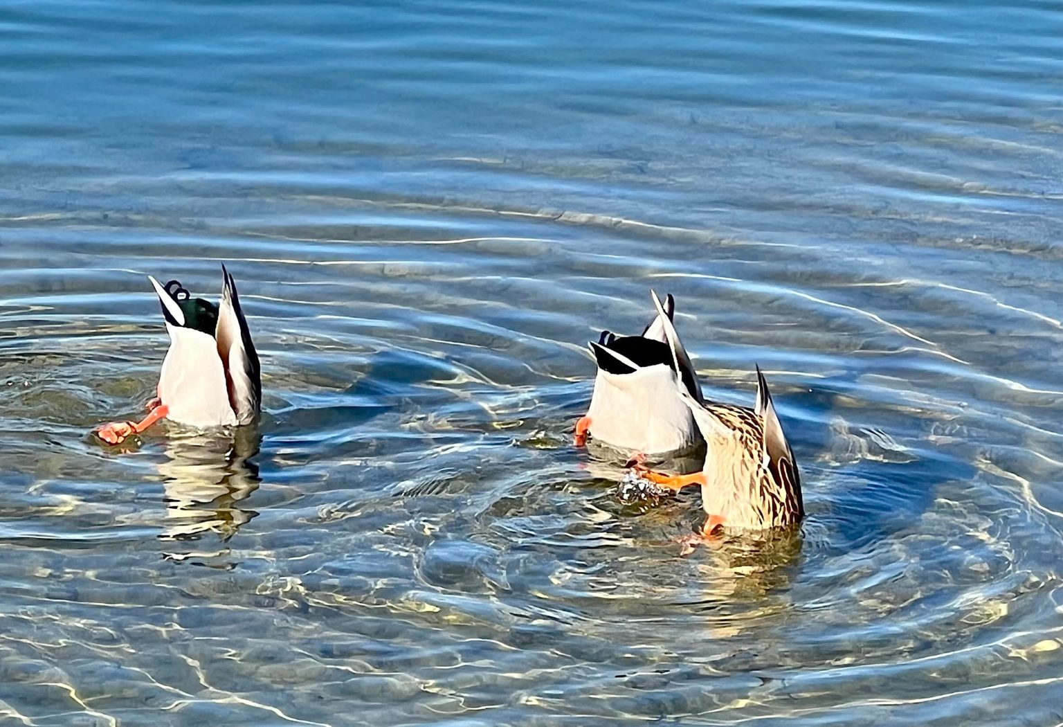 Wenn alle Entchen gleichzeitig im Synchron-Stil auf Tauchstation gehen und ihre Schwänzchen in die Höh‘ recken, muss es an dieser Stelle wohl etwas besonders Gutes zu fressen geben! Das herzige Trio wurde von Susanne Aemisegger fotografiert.