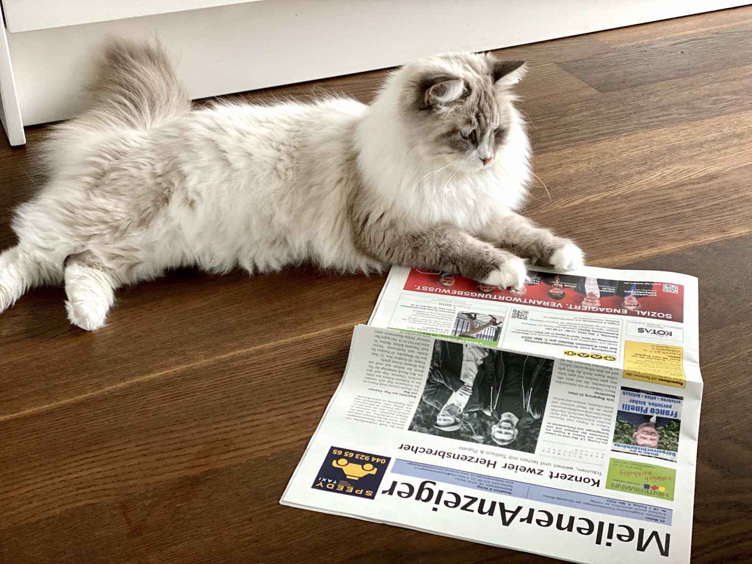 Sandra Hänni hat uns dieses Foto ihres elf Monate alten Katers geschickt: Leo hält die neue Ausgabe des Meilener Anzeigers wie immer als Erster in den Pfoten!