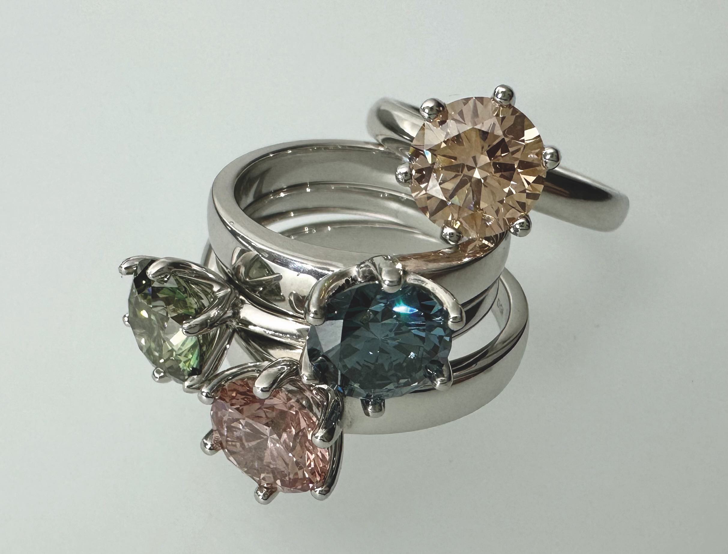Sie arbeitet auch mit LAB-Diamanten, also mit im Labor gezüchteten Diamanten. Diese werden in einer neuen Designlinie gezeigt: Als Solitaire (Ringe und Colliers), ergänzt mit tollem Ohrschmuck. Das ist zeitlose Schönheit ohne ethische Bedenken.