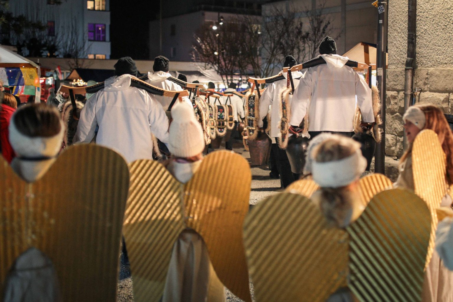 Sympathisch und herzig waren Eseli, Engeli, Samichlaus, Schmutzli, Einschäller und Geisslechlöpfer, die beim Eindunkeln durch den Markt zogen und Nüssli, Guetzli und Mandarindli an die Besucherinnen und Besucher verteilten.